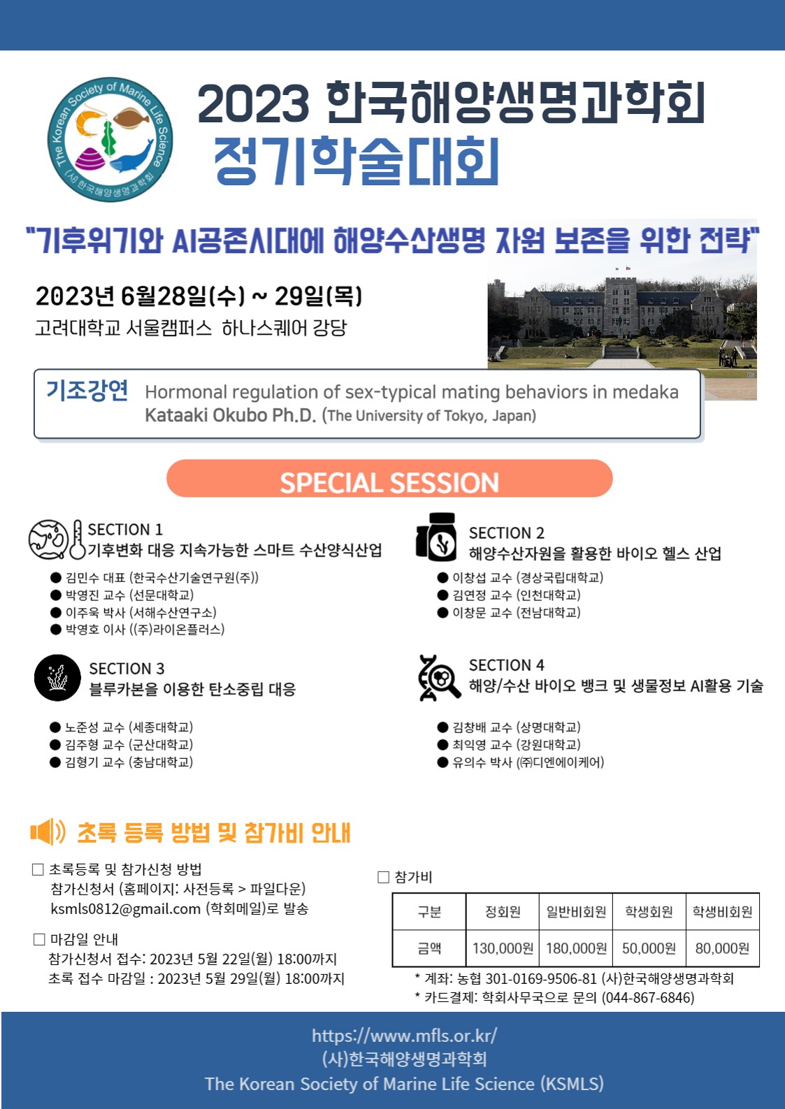 2023년도 한국해양생명과학회 정기 총회 및 정기학술대회 개최안내